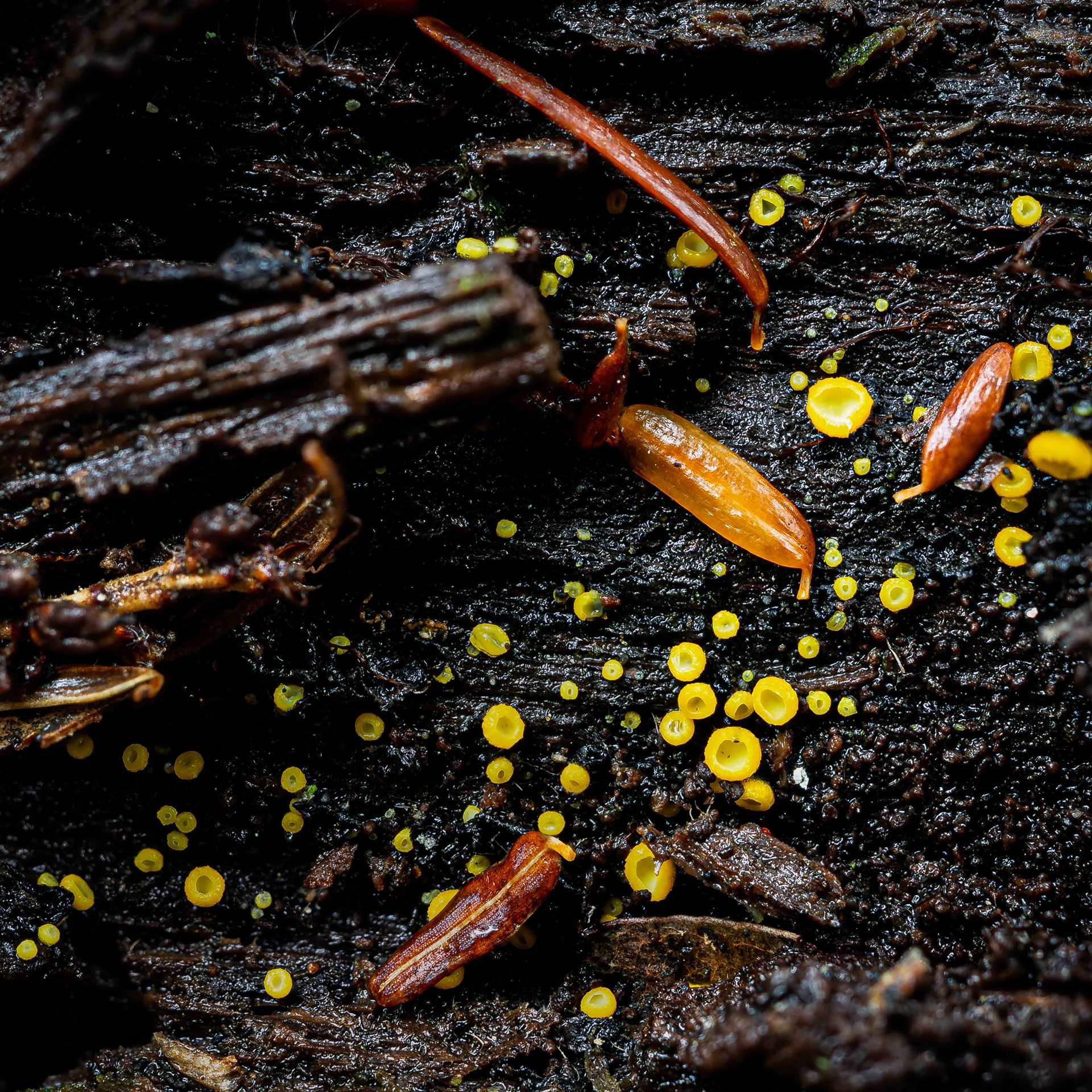 Chlorociboria aeruginascens, green elf cups